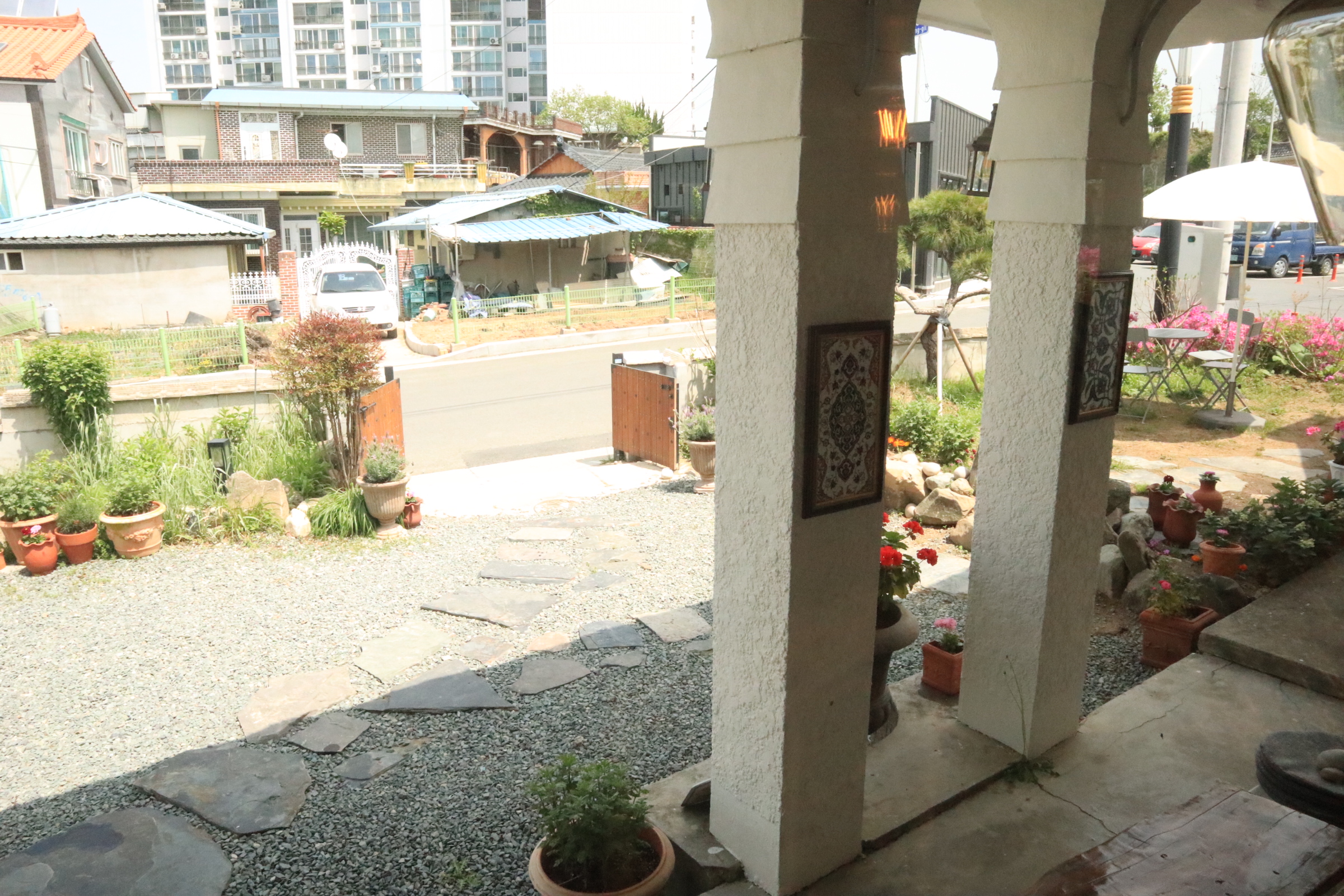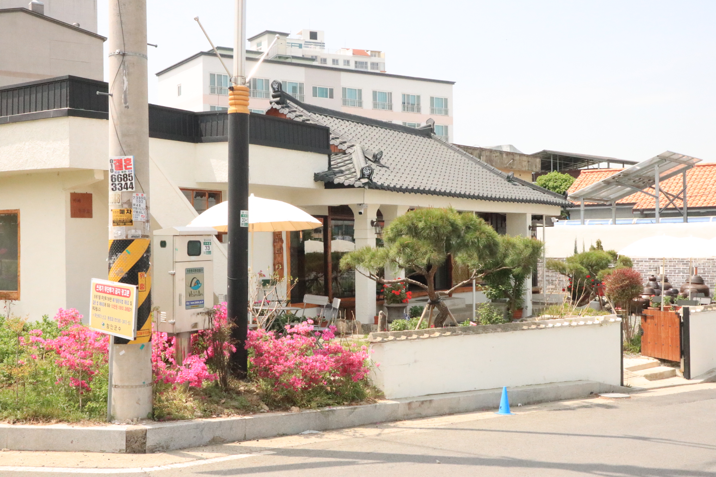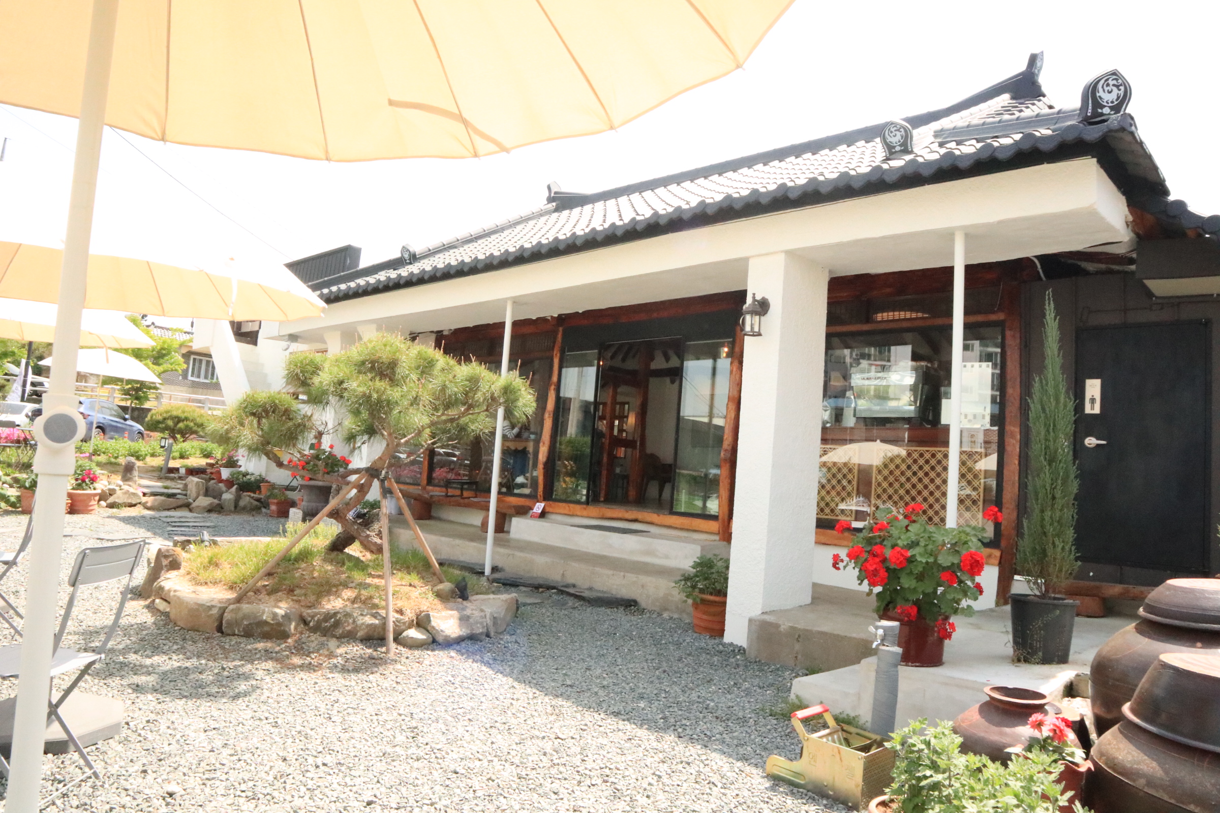 화이트톤과 집의 모양 틀을 그대로 살려놓은 함안카페 두루고