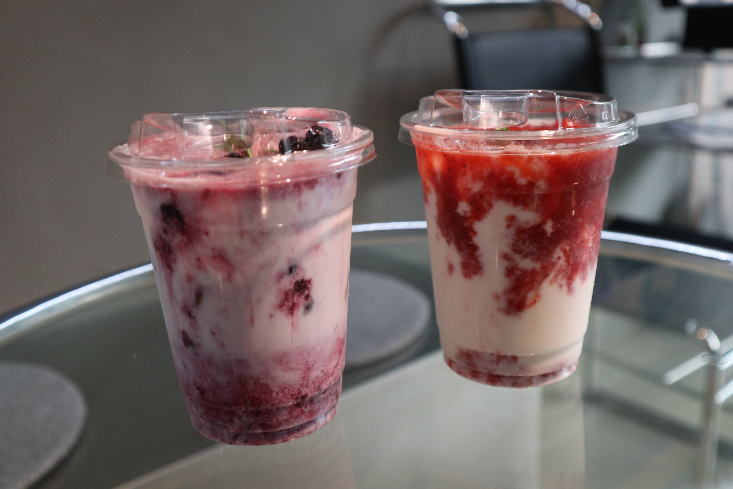 우유와 과일청의 층이 나눠진 상태가 자연스럽게 너무 예뻤다.